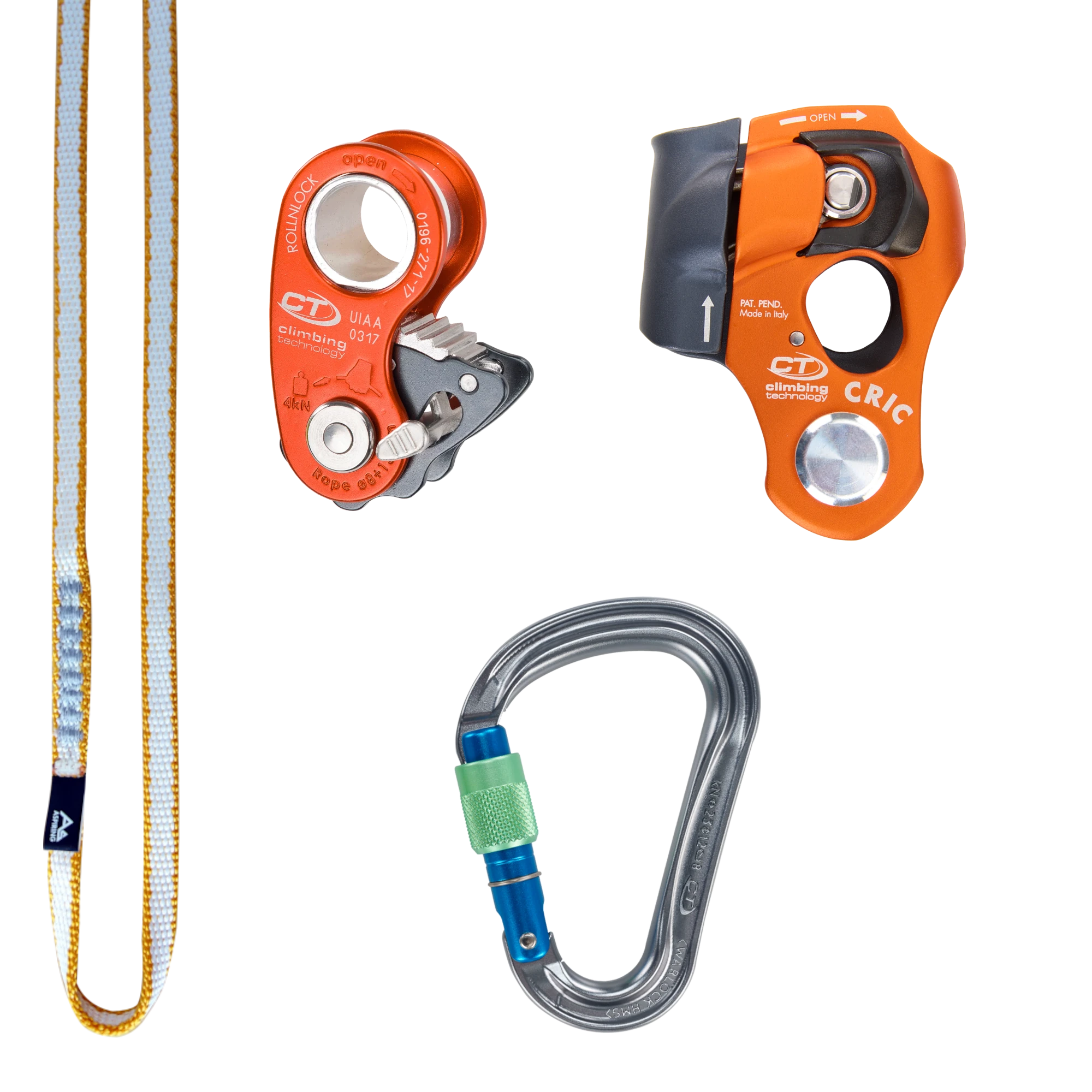 Contains: 1 x CT Roll-n-Lock, 1 x CT Cric, 1 x CT Warlock Carabiners, 1 x Aspiring 120cm 10mm Sling