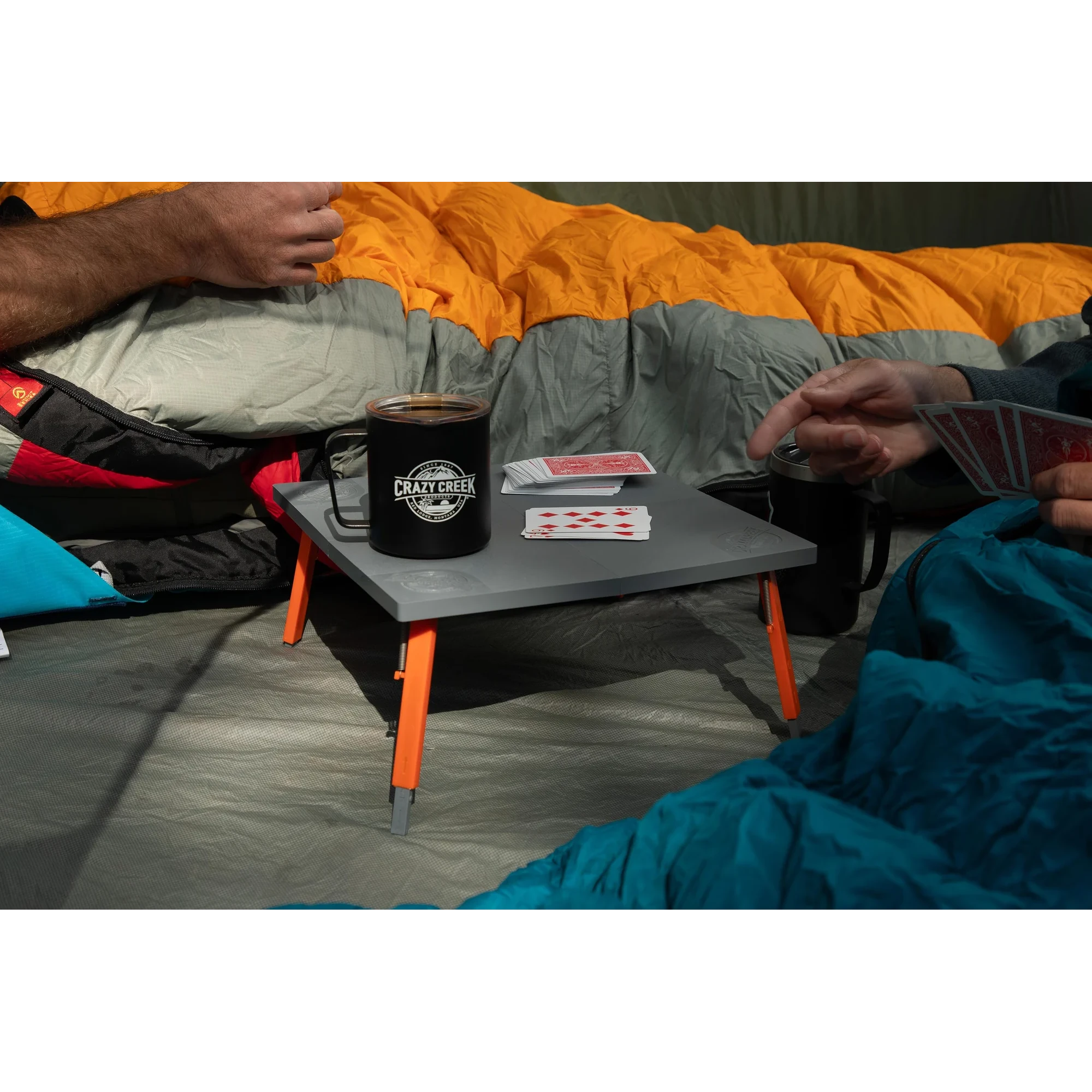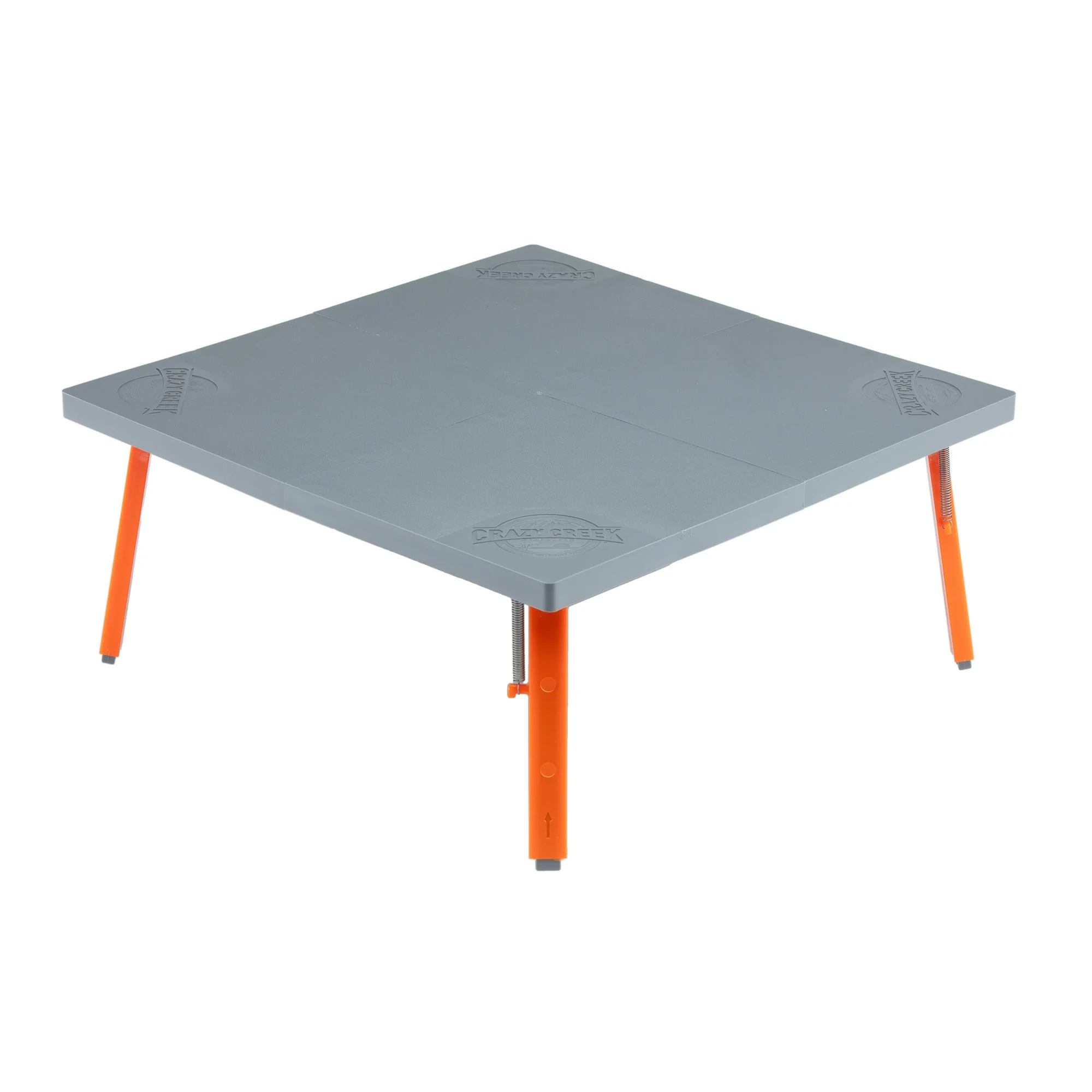 The Crazy Creek Pack Table is the ultimate solution for those who demand both convenience and durability. Measuring 30cm x 30cm with a textured surface, this ultra-compact table packs down to a mere 15cm x 15cm x 5cm cube, making it perfect for adventurers on the move. The adjustable legs (12-20cm) ensure a stable, level surface on any terrain, while the spring assist mechanism keeps the table upright during setup. Made from recyclable polypropylene (Recycle #5) and featuring a sleek cement grey top with orange legs, it’s not only functional but eco-conscious. Ideal for backcountry kitchens, picnics, or inside your tent, this table is designed, manufactured, and assembled in Montana, USA. It’s a must-have for any outdoor enthusiast.