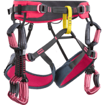 Harness for women, lightweight and versatile, with a shape specifically designed for women’s physique. Designed for mountaineering and ice climbing.