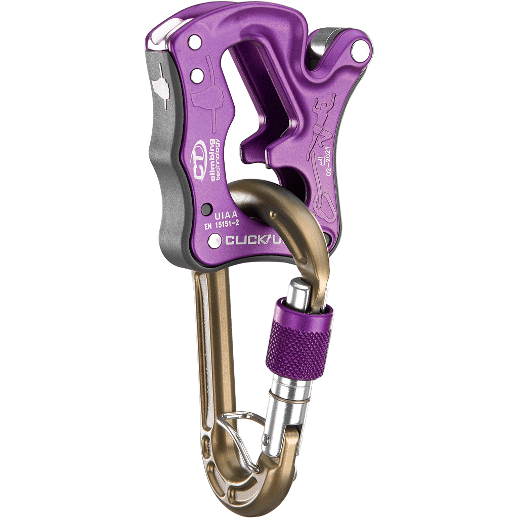 The Click Up is supplied and must be used together with the specific HMS carabiner CONCEPT SGL HC, with wear-resistant anodizing and ACL system that prevents the possibility of minor-axis cross-loading.