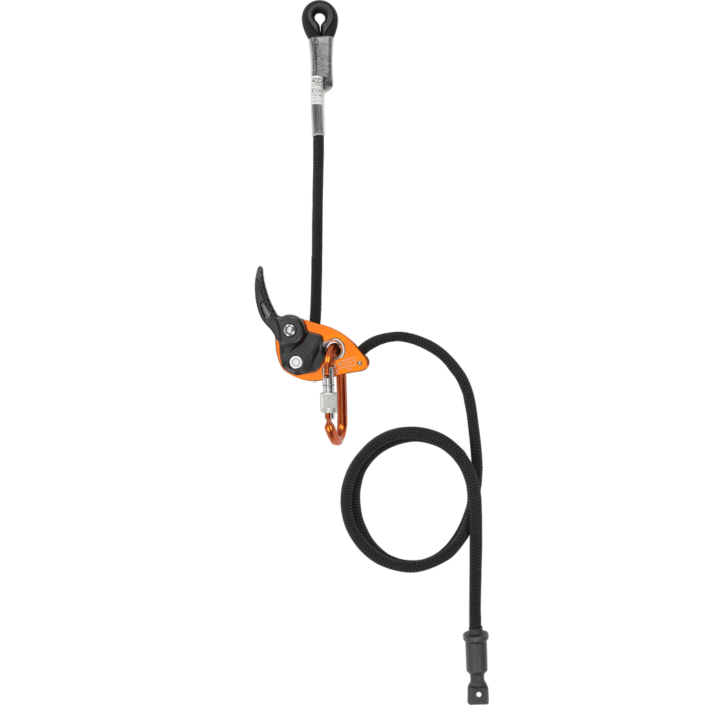 - Equipped with an adjuster device that bears a control lever and allows for the smooth movement of the rope, without sudden jerks, immediately locking in the position as soon as it is released. It allows for easy recovery and release of the rope, even under tension.