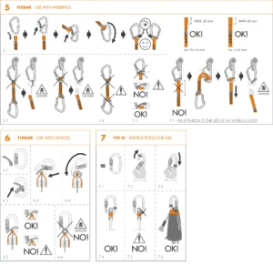 Positioning element used to hold the connector in the correct position when it is inserted into the sewn loop of a sling or in the connection point of a device (e.g. attachment hole in a pulley).