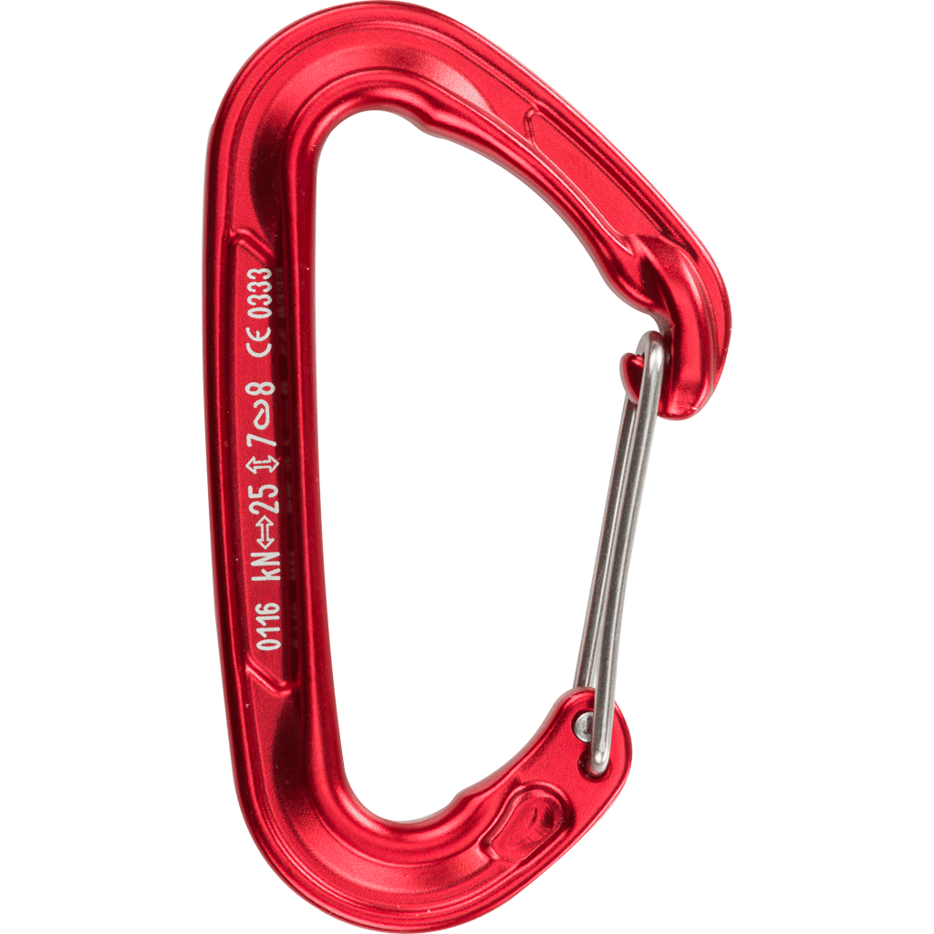Hot-forged light alloy carabiner with wire gate, ideal for mountaineering, multi-pitch sport climb and big wall.