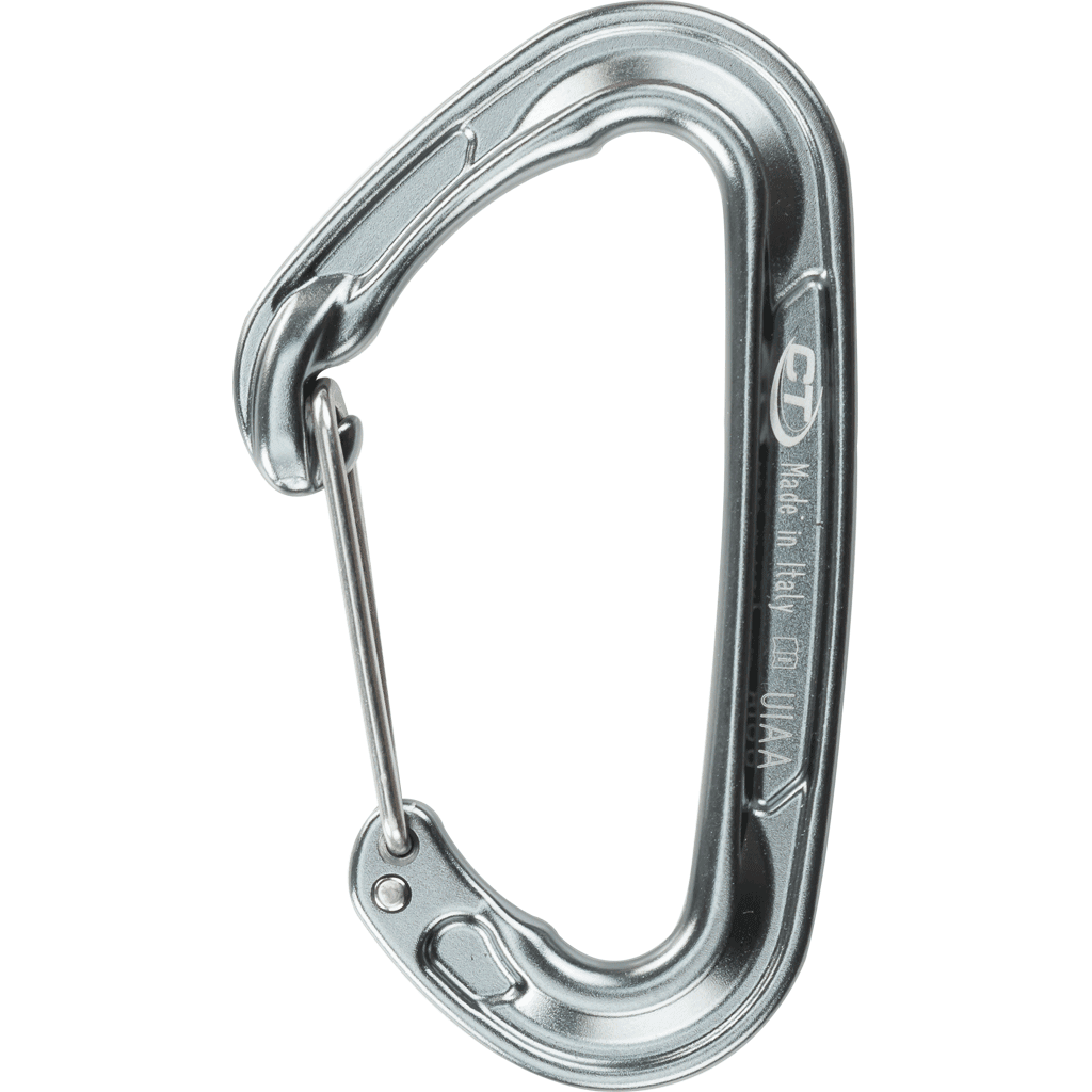 Hot-forged light alloy carabiner with wire gate, ideal for mountaineering, multi-pitch sport climb and big wall.