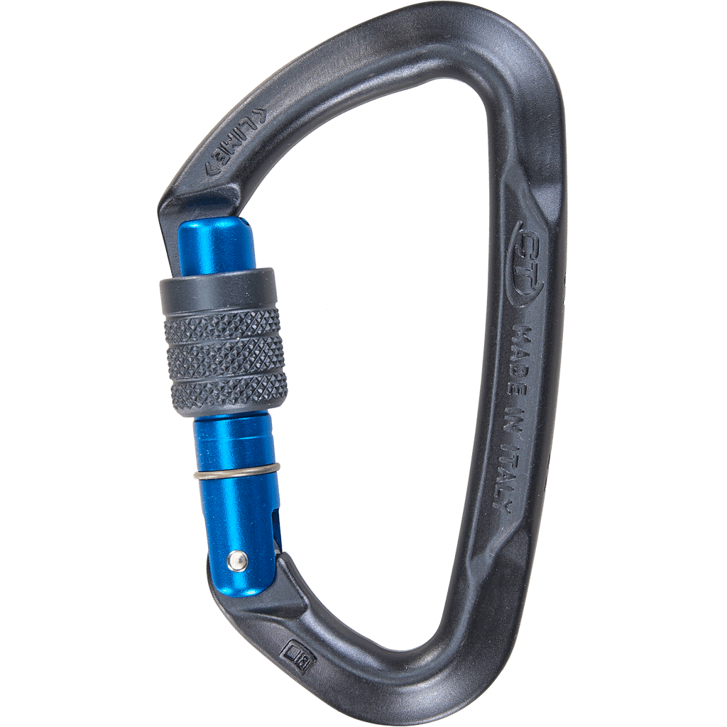 Compact hot-forged light alloy carabiner with screw gate, designed for mountaineering and sport climb in general.