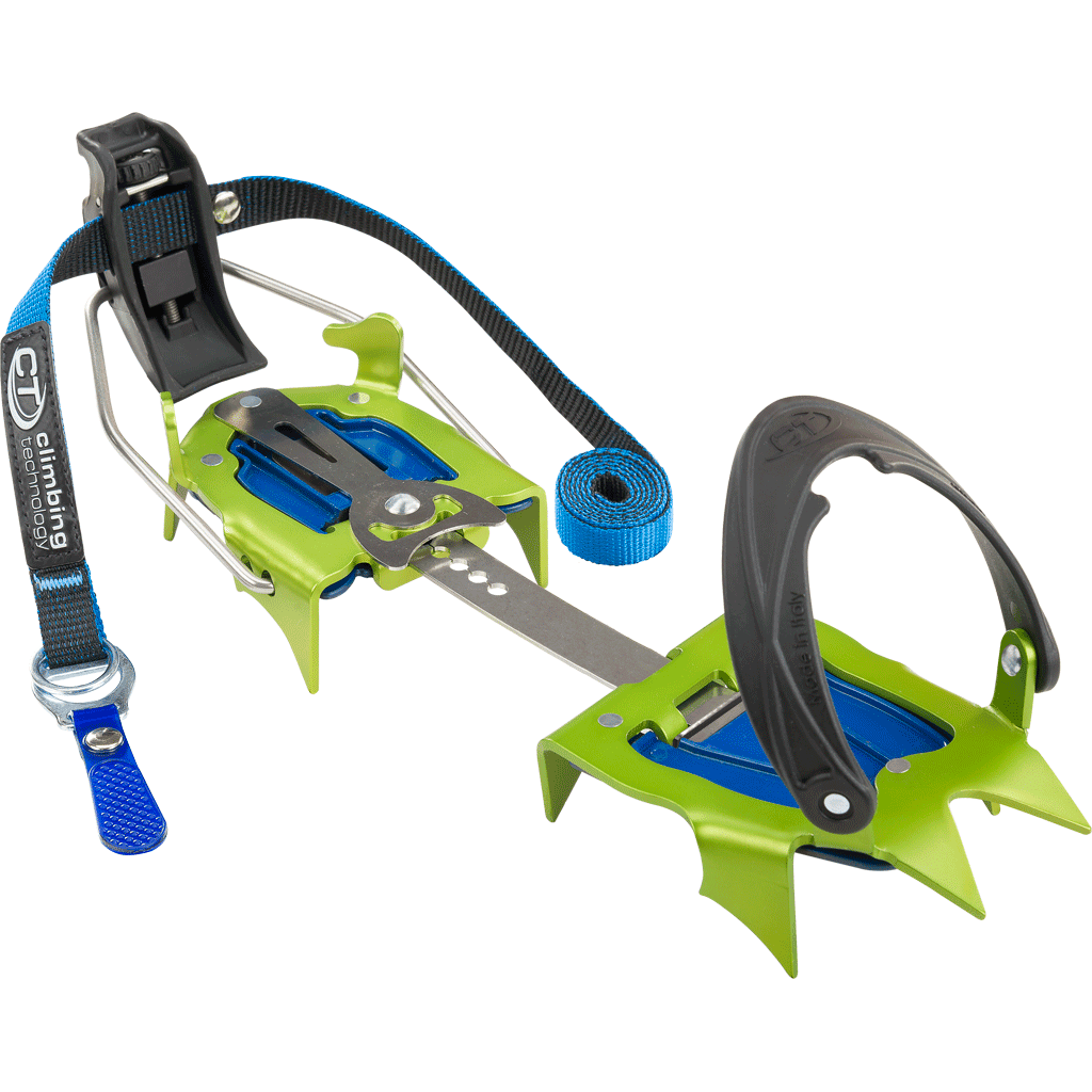 - Flexible and adjustable linking bar, that allows for the use of the crampons also with non-rigid boots.