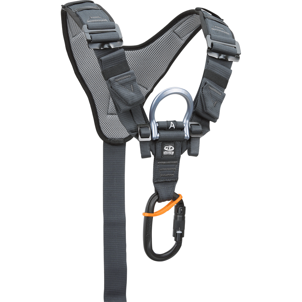 - Equipped with dedicated straps for the installation of a CHEST ASCENDER+ ventral rope clamp – in conjunction with SPACER, the piece that prevents the direct contact between strap and device.