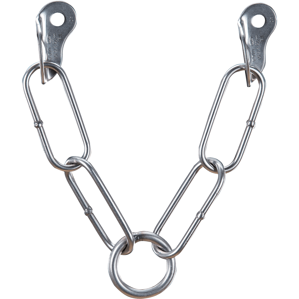 - Composed of two plates (10mm/12mm), V shaped linking chain, and a 40mm lowering central ring.
