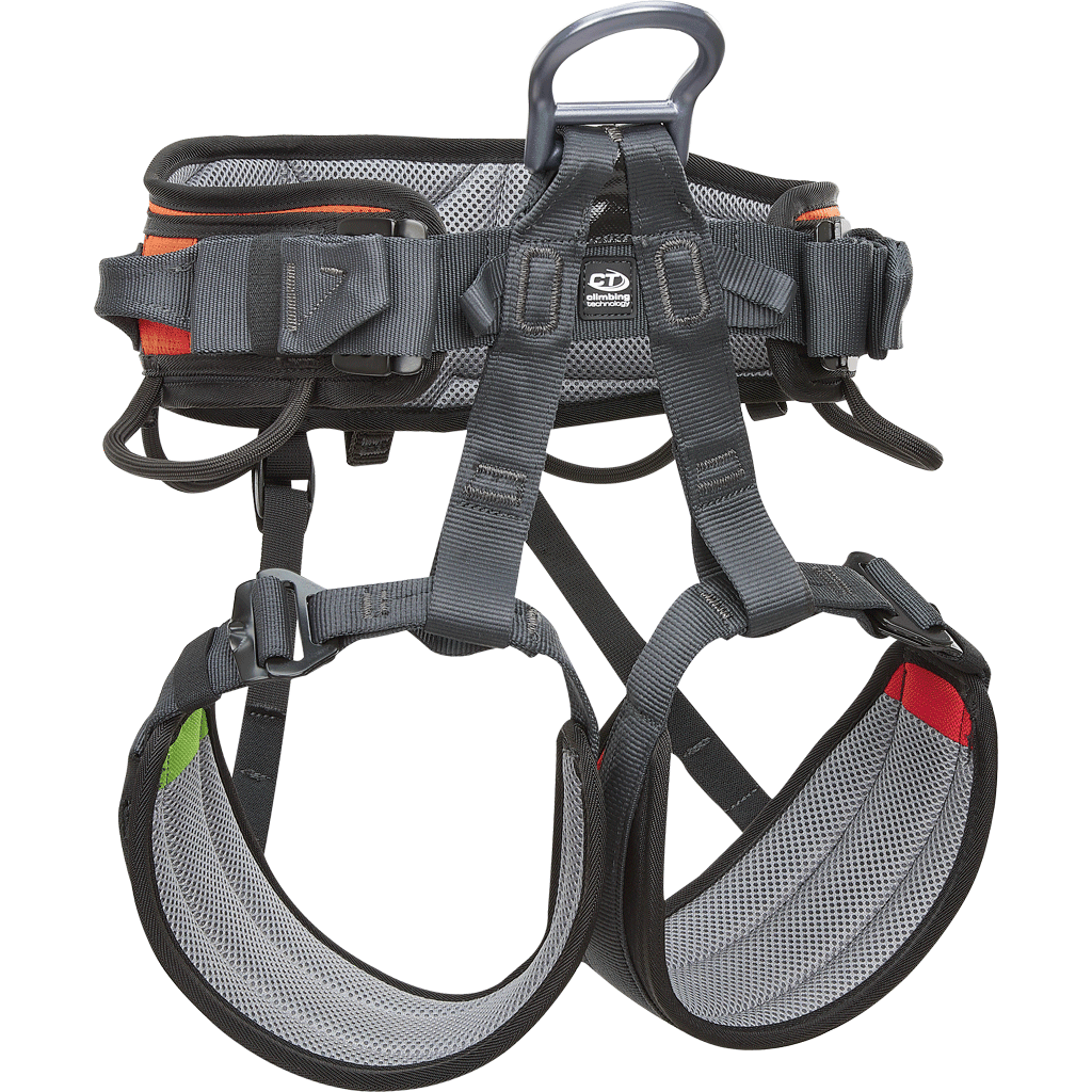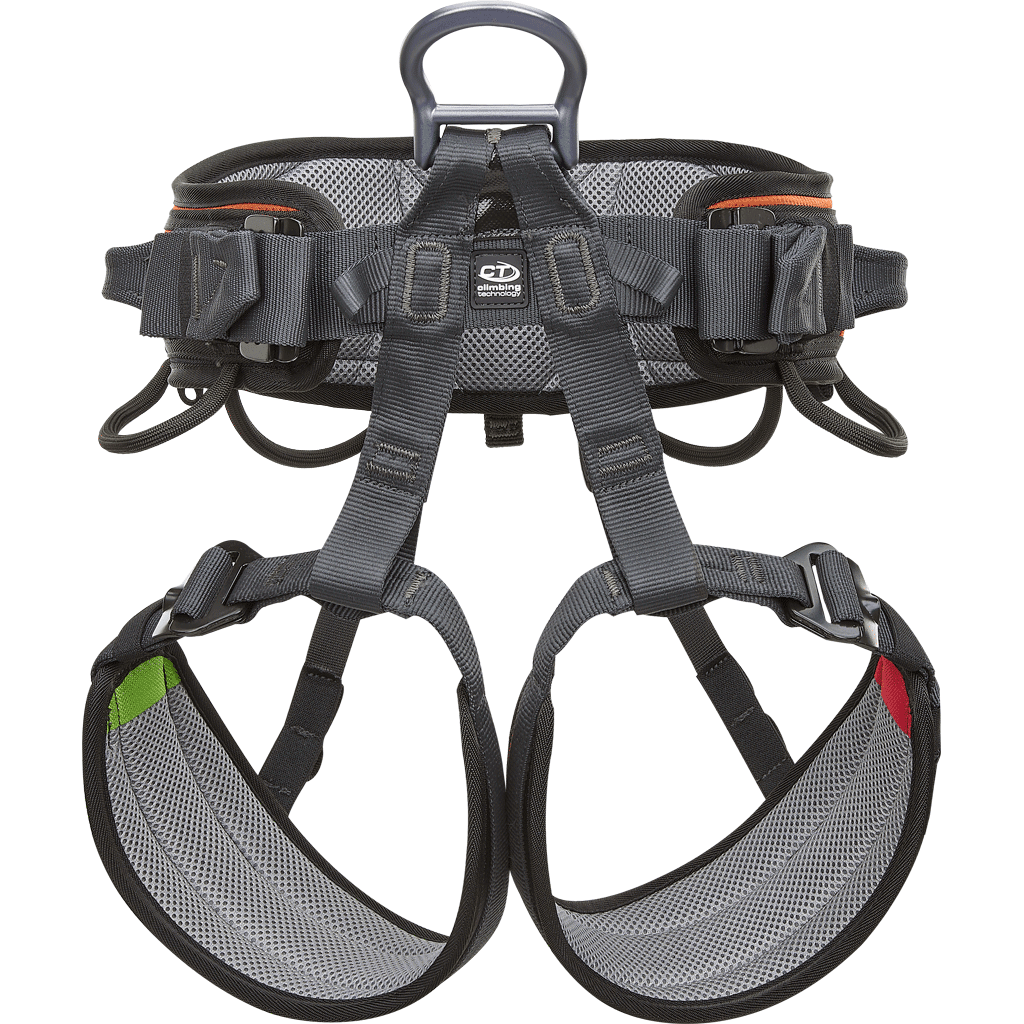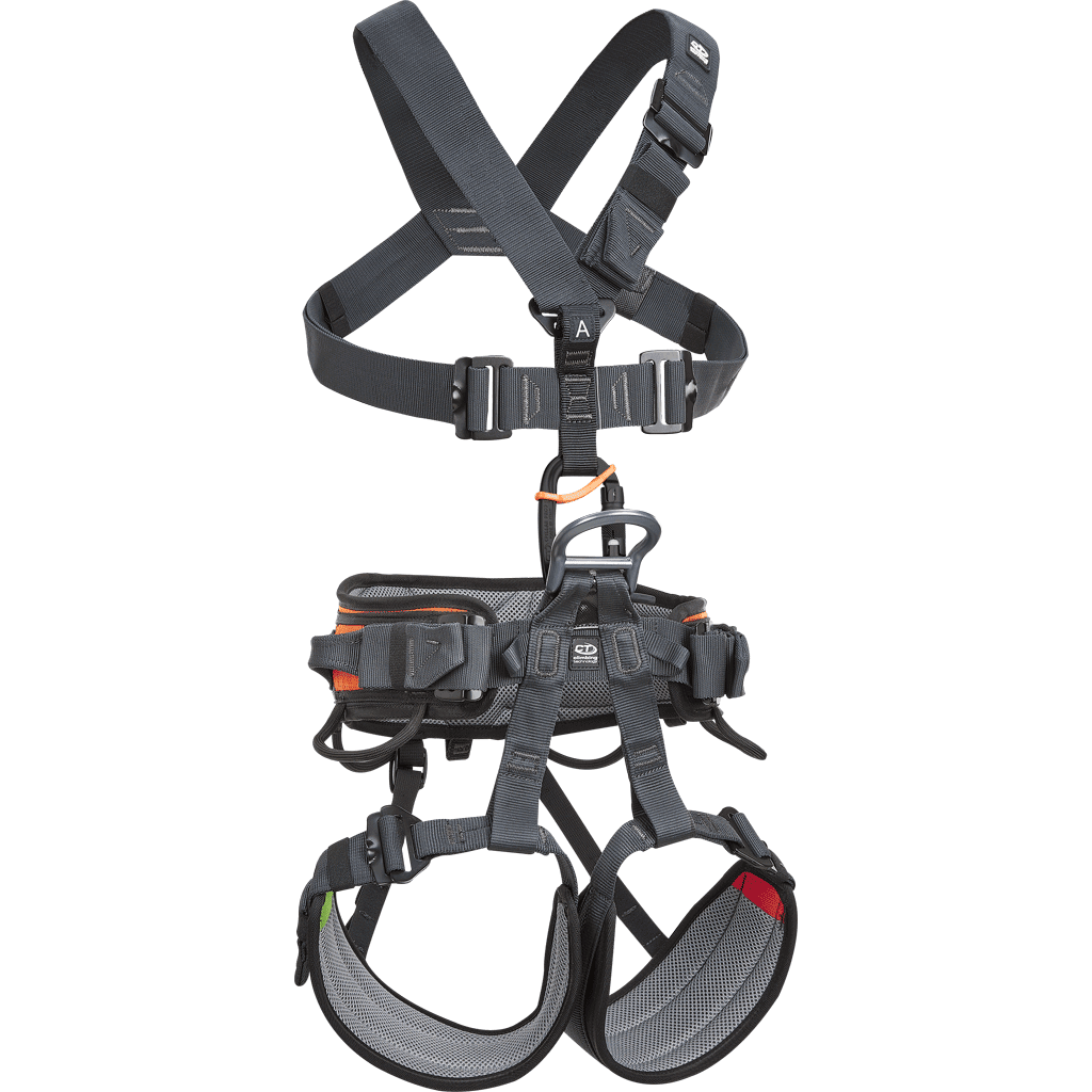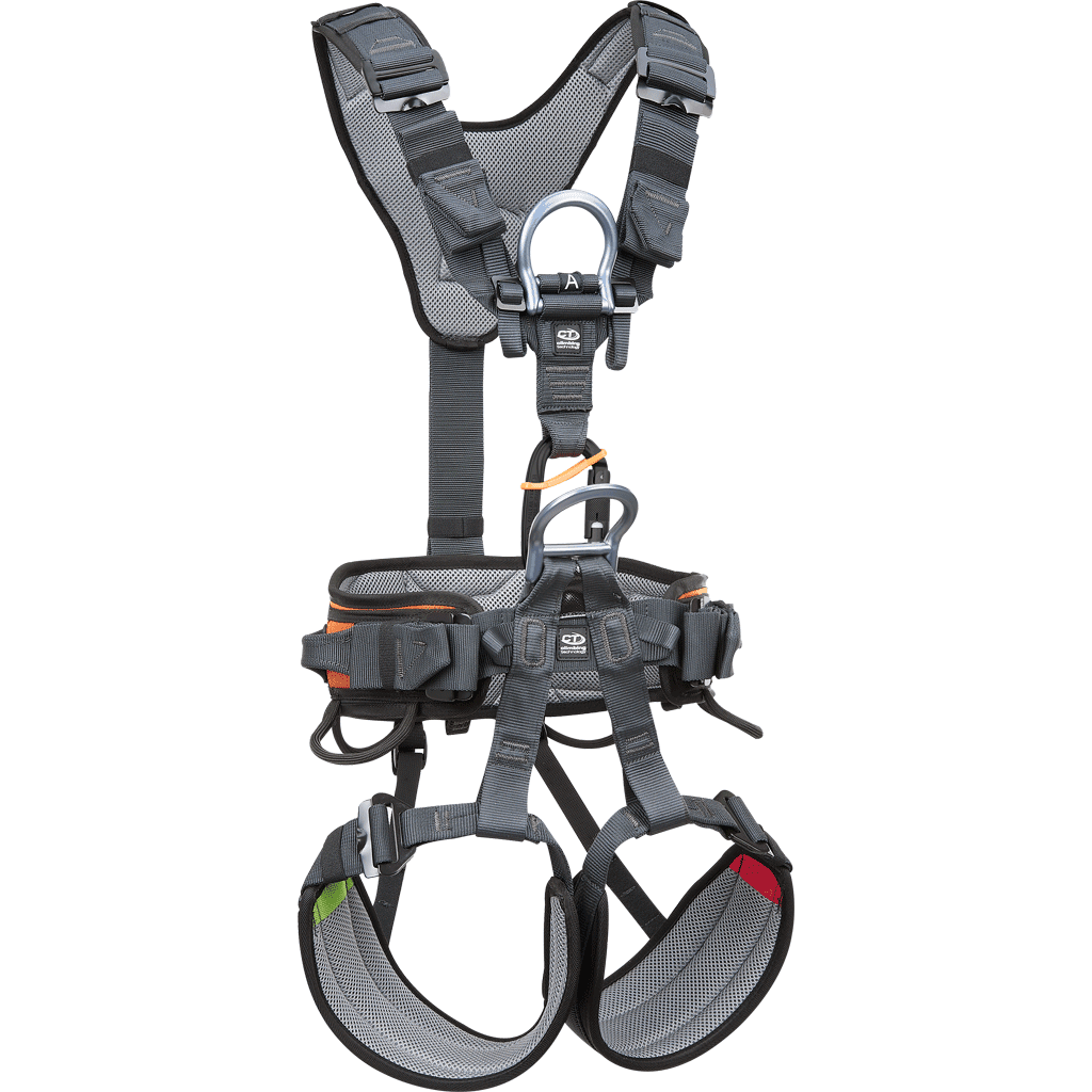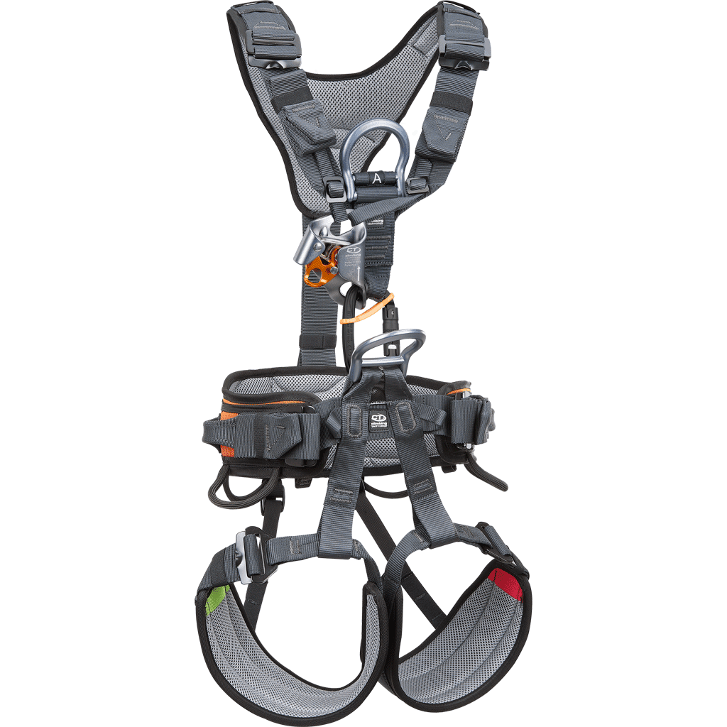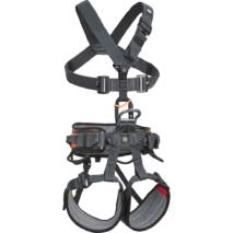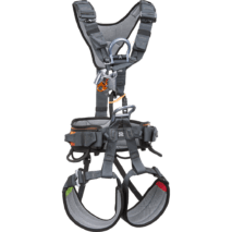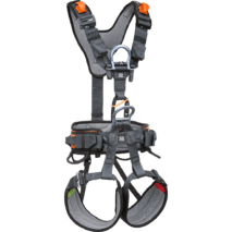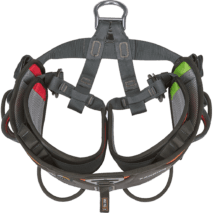 Ergonomic and lightweight seat harness equipped with two lateral attachment points in webbing, a ventral attachment point in light alloy and a rear in webbing. When used in conjunction with TOP X or TOP Y chest harnesses, combines to form a full-body harness (EN 361) with five attachment points, an excellent choice for rope access workers who seek comfort without compromising on weight.