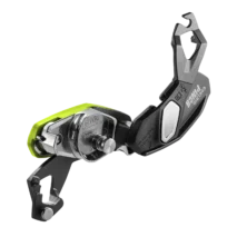 - Frontal steel brake grooves allow the rope to run linearly and ensure less rope tangling, increased durability and prevent unsightly discoloration that occurs when the rope rubs against aluminium