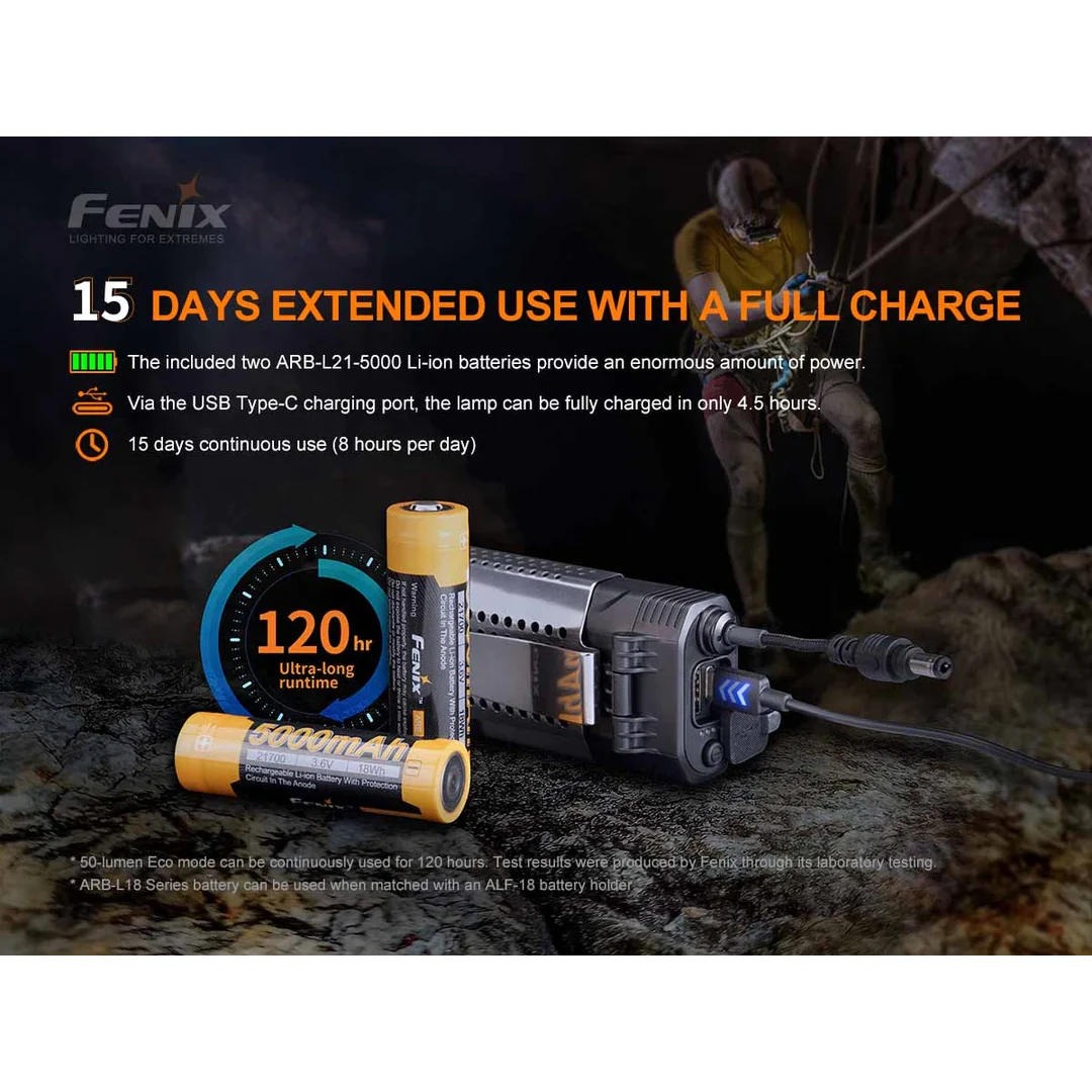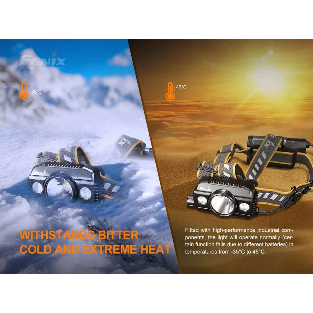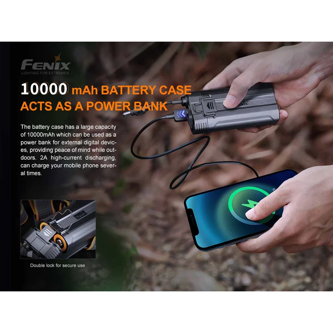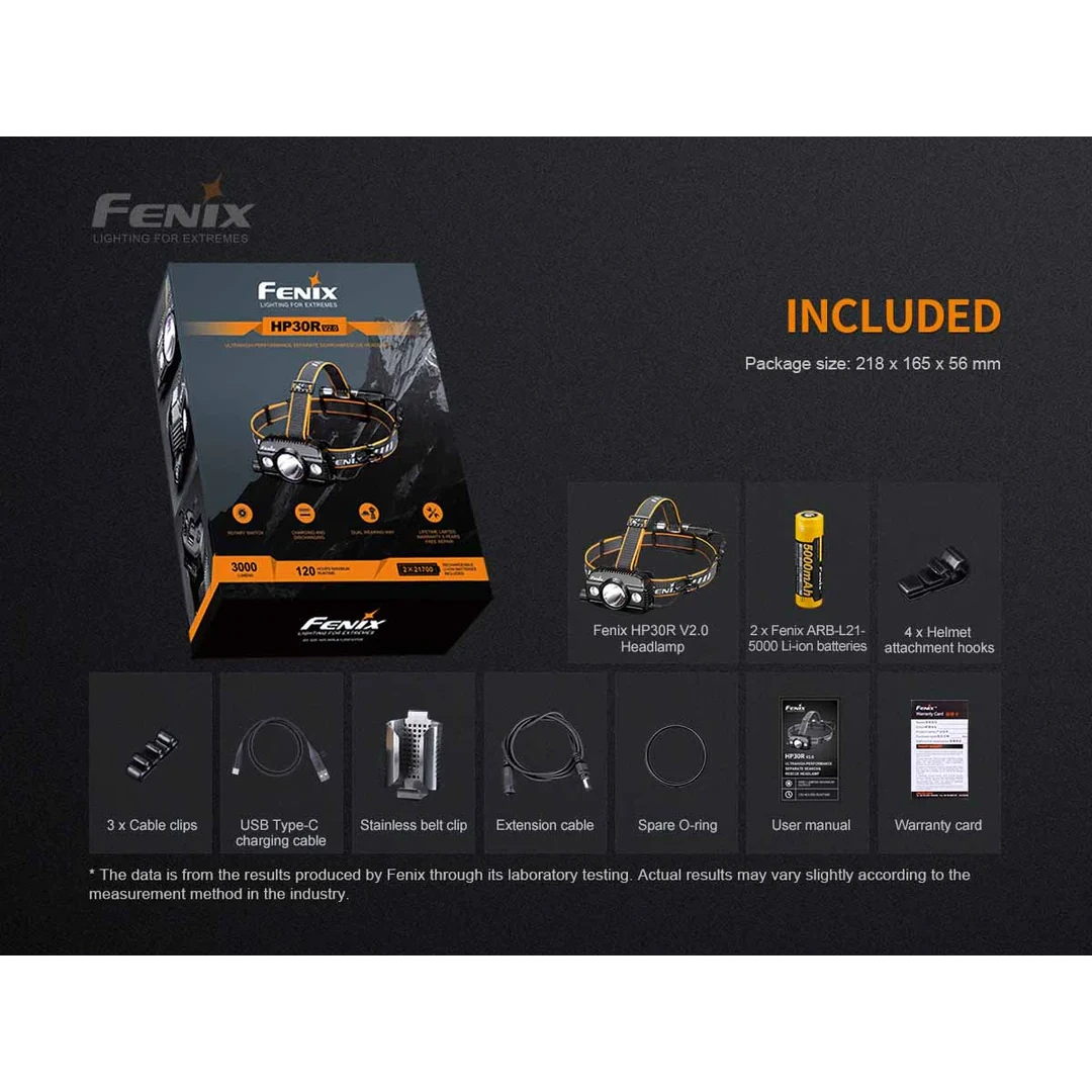 Fenix HP30R V2.0 is a professional headlamp with separate battery case, powered by two 21700 Li-ion batteries. This headlamp is rechargeable via the USBC port in the battery case, and the battery can be used as a power bank to charge other devices. The dial switch allows you to switch between four white spotlight output levels, and three neutral white floodlight output levels. The spot- and floodlight can be switched on simultaneously to deliver a max output of 3000 lumens. Made for the professional, the Fenix HP30R V2.0 Headlamp is built for performance—high performance.