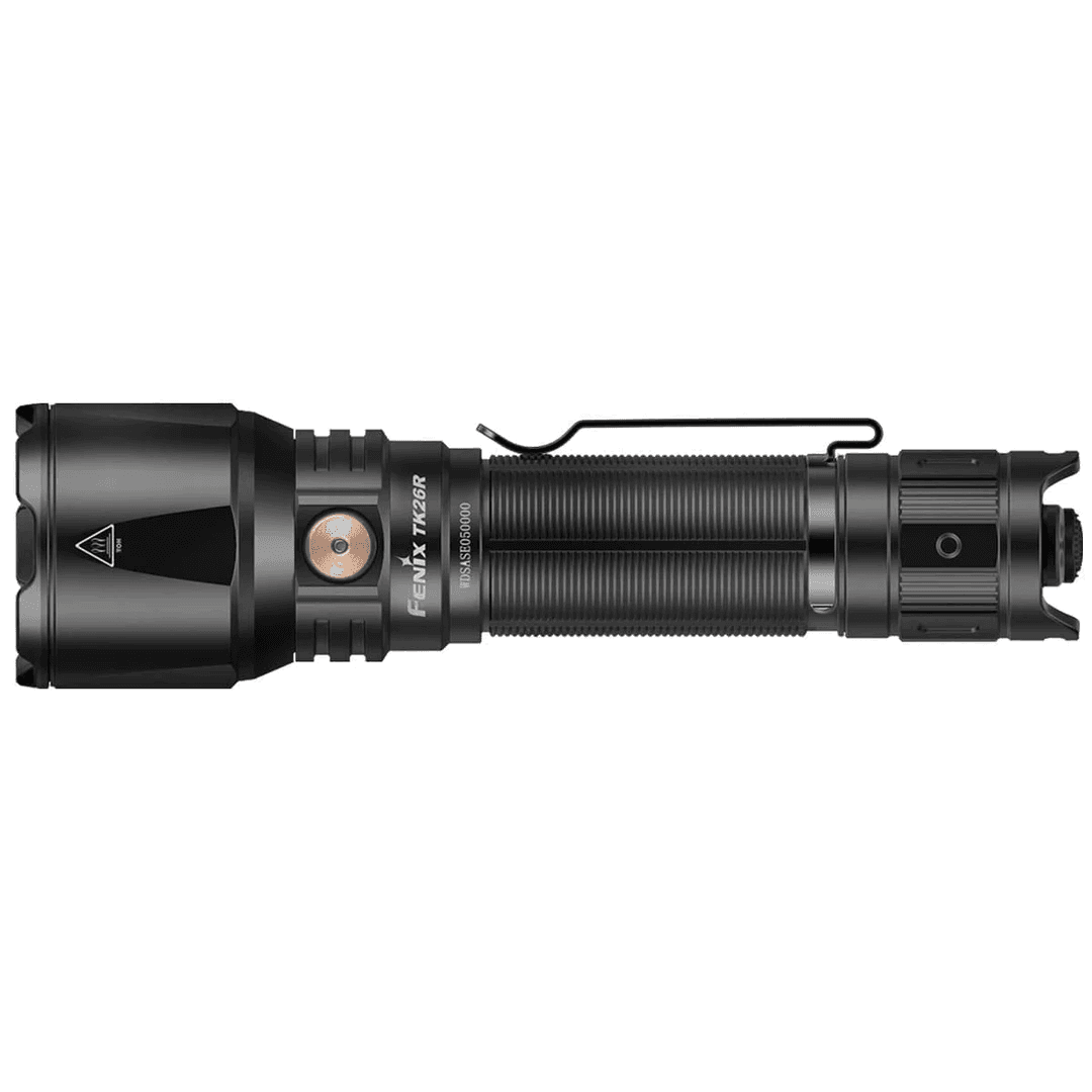 The Fenix TK26R is a tactical flashlight packed full of features. Not only do you have five modes of white light, but you also have an independent red and green light. Powered by one included 18650 battery, this light can blast a maximum 1500 lumens 1148ft (350m). Features include three independent switches that control all the lights functions, plus strobe, a battery level indicator and strike bezel. Built tough from premium aluminum, this tactical flashlight is also waterproof and dustproof. This exceptional tactical flashlight is perfect for use in law enforcement, hunting or search and rescue activities.
