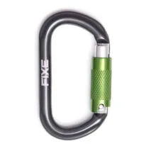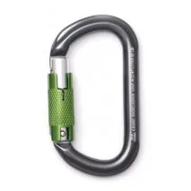 Wide symmetrical carabiner with screw lock ideal for use with pulleys and knots.