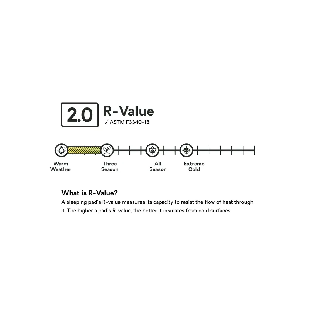 Switchback also leverages a metallized thermal film layer to efficiently reflect heat back to your body. Blend that with 15% more heat-trapping space, and this innovative new design is able to deliver a warmer, more comfortable sleep than other pads in this category.