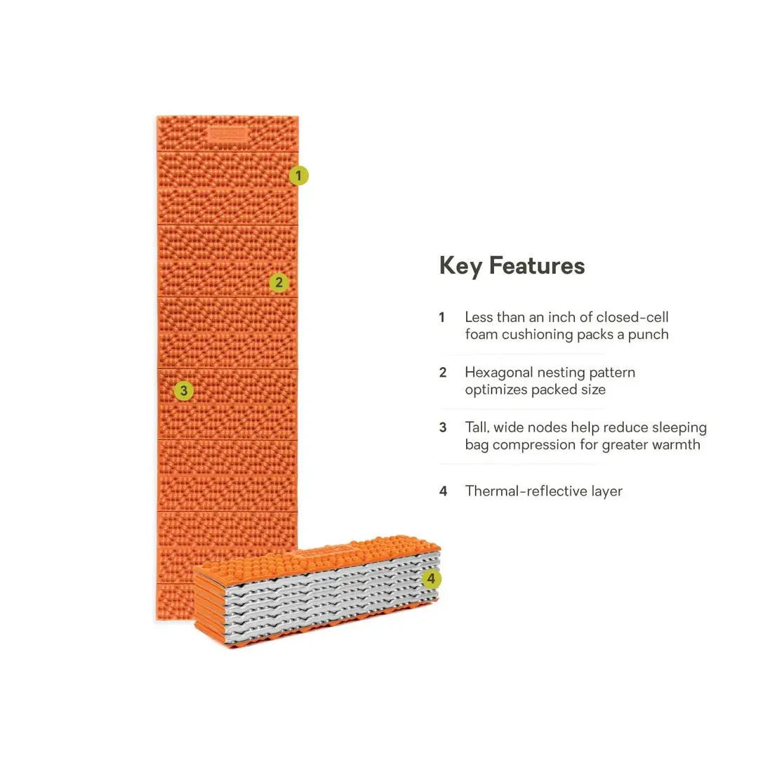 With Switchback, NEMO has redefined the classic closed-cell foam sleeping pad to deliver more thickness and plush comfort in an industry-leading packed size. This pad features hexagonal nodes moulded with our dual-density Axiotomic™ foam to create Hypnoelastic™ zones that conform to your body in a perfect balance of comfort and support.