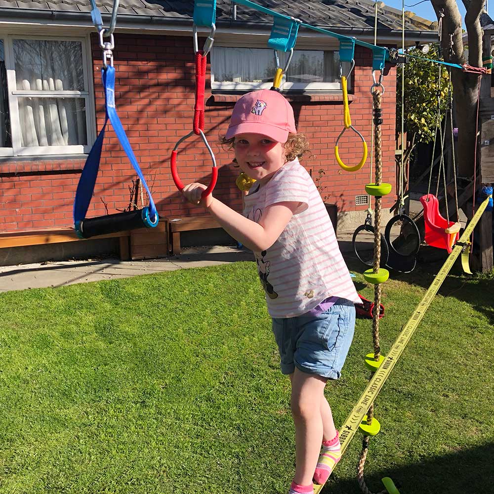 Our Ninja Line Slackline Kit is a great way to get kids into Slack Lining! The addition of monkey fists, rings and ropes gives them something to hold onto while they increase their balancing skills.