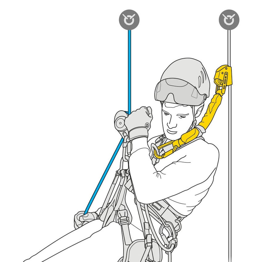 - Available in two lengths, to provide the best balance between distance from the rope and reducing fall length