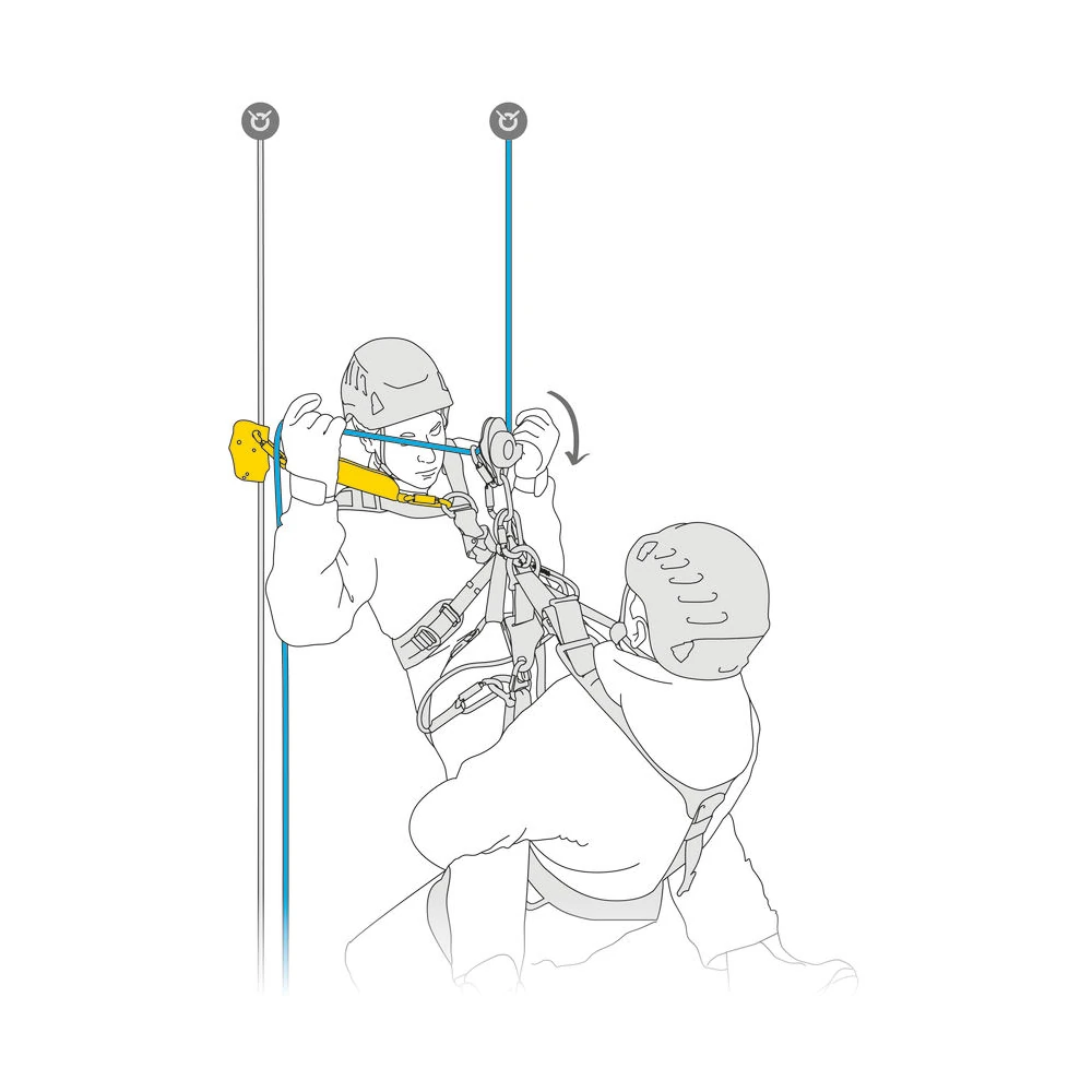 It allows user to work at a distance from the rope, in order to protect it during certain work phases. Equipped with tear-webbing inside a pouch that opens on each end, the absorber is protected from abrasion, while allowing for regular inspection. It can be used in two-person rescue situations for a maximum load of 250 kg.