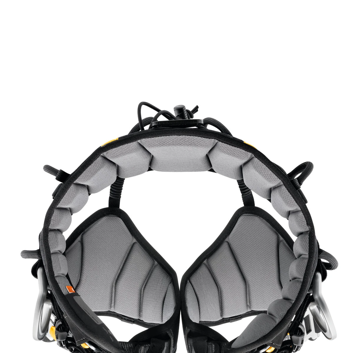 - Semi-rigid, wide waistbelt and leg loops for excellent positioning; sculpted and lined with foam padding for comfort during suspension