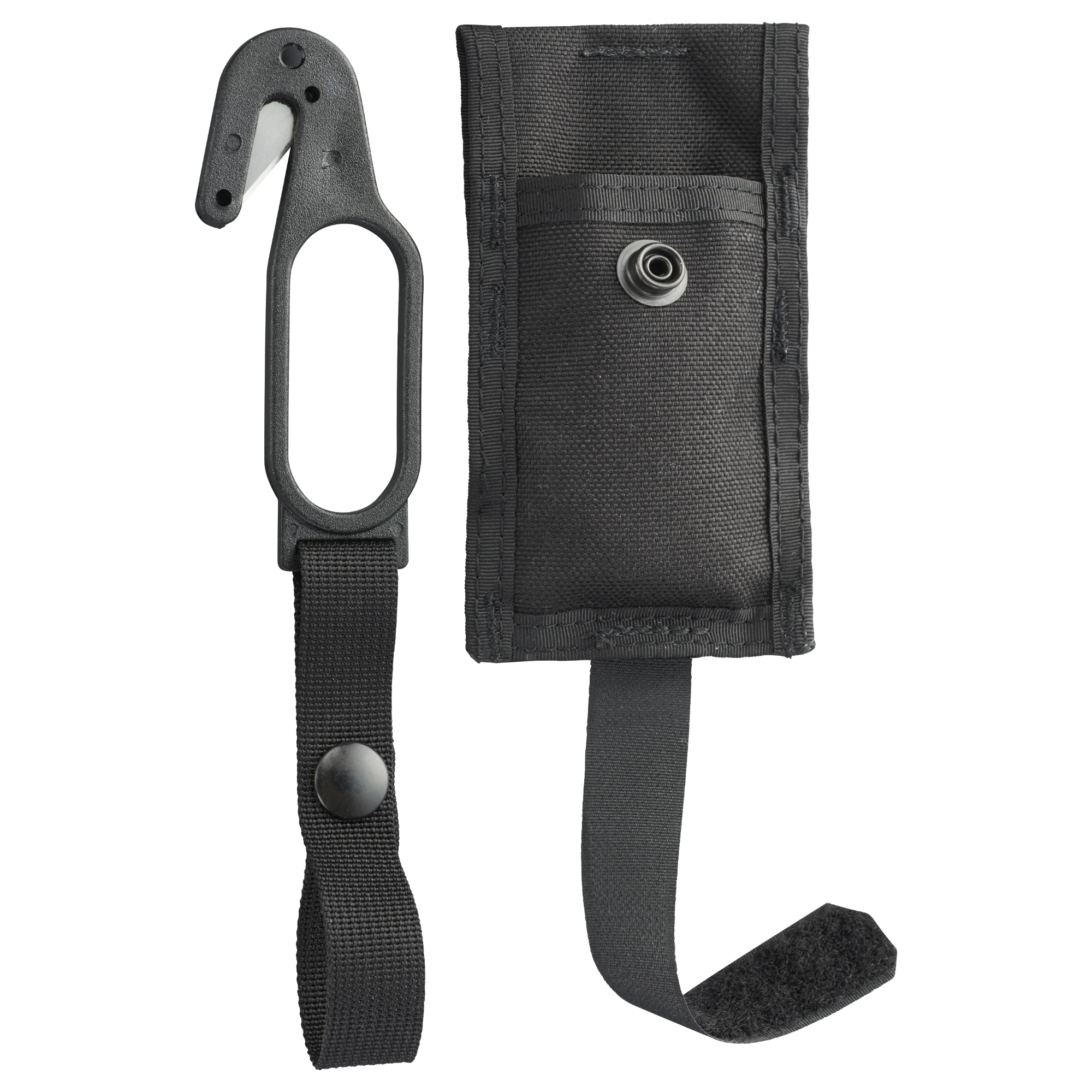 The ACCESSORY KNIFE is a small, lightweight and flexible bag that can store a knife. The pouch closes with a snap and can be easily opened even when wearing gloves. The fabric of the bag does not absorb water and therefore does not become heavier in the rain. By means of a loop, the bag can be attached to an equipment vest or a belt.