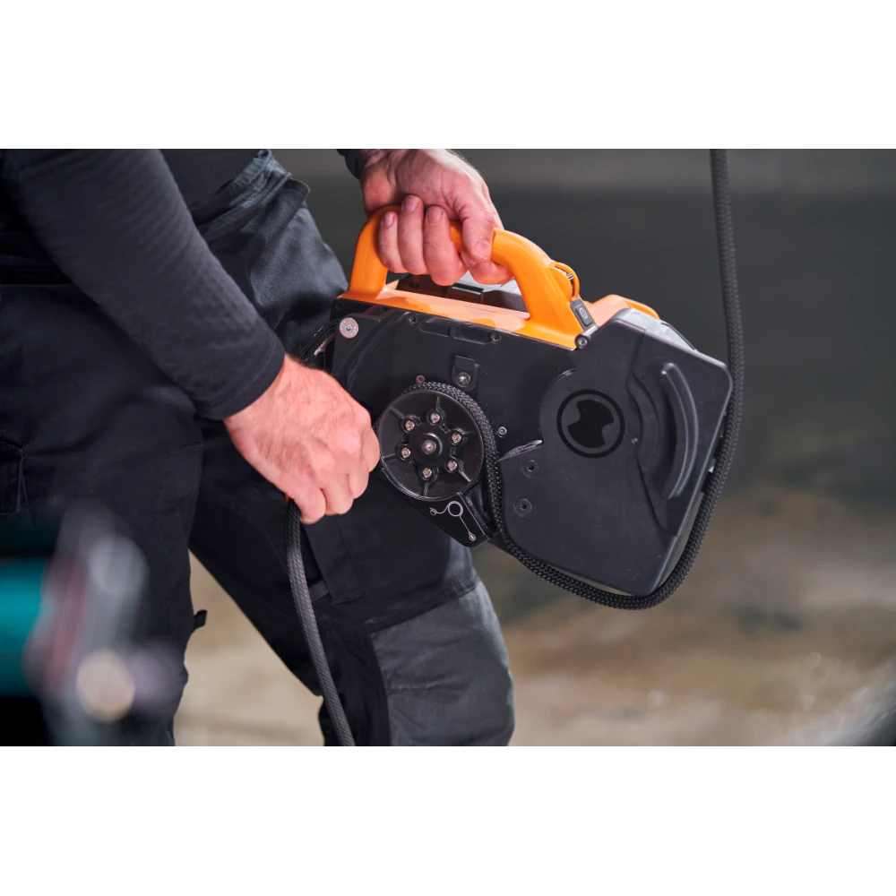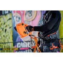 The ultralight, compact entry-level ActSafe ICX power ascender has been developed for a safe and efficient transport of persons in hard-to-reach areas. Paired with a rope, the ActSafe ICX forms an incredibly flexible system for the straightforward and cost-efficient cleaning and maintenance of complex structures. Its intuitive operation is effortlessly managed with a thumb wheel, enabling precise work. Thanks to its IP55 rating, the ActSafe ICX can be used in all weather conditions. Rope loading is straightforward, streamlining your workflow and saving valuable time. Additionally, the control of the ActSafe ICX can be taken over by a second person on the ground using a remote control. This allows for the automatic ascent or descent of the individual operating the device, in case they are unable to do so themselves. Operating and utilizing the ActSafe ICX is quickly and easily learned through user training.