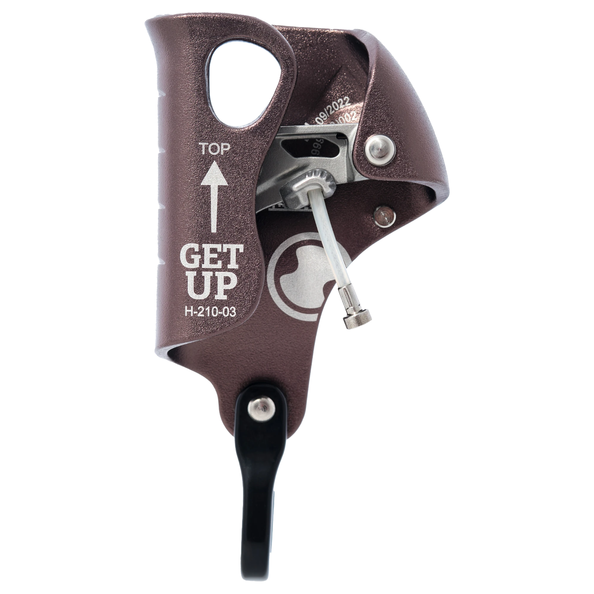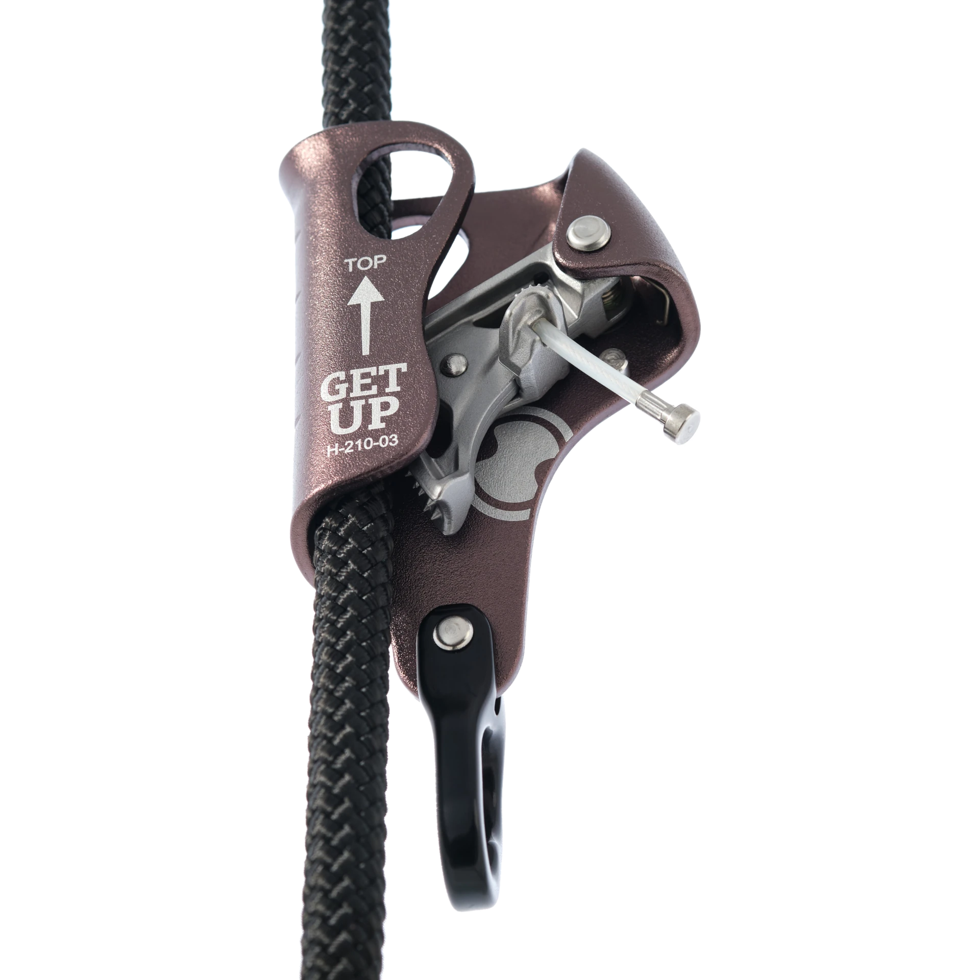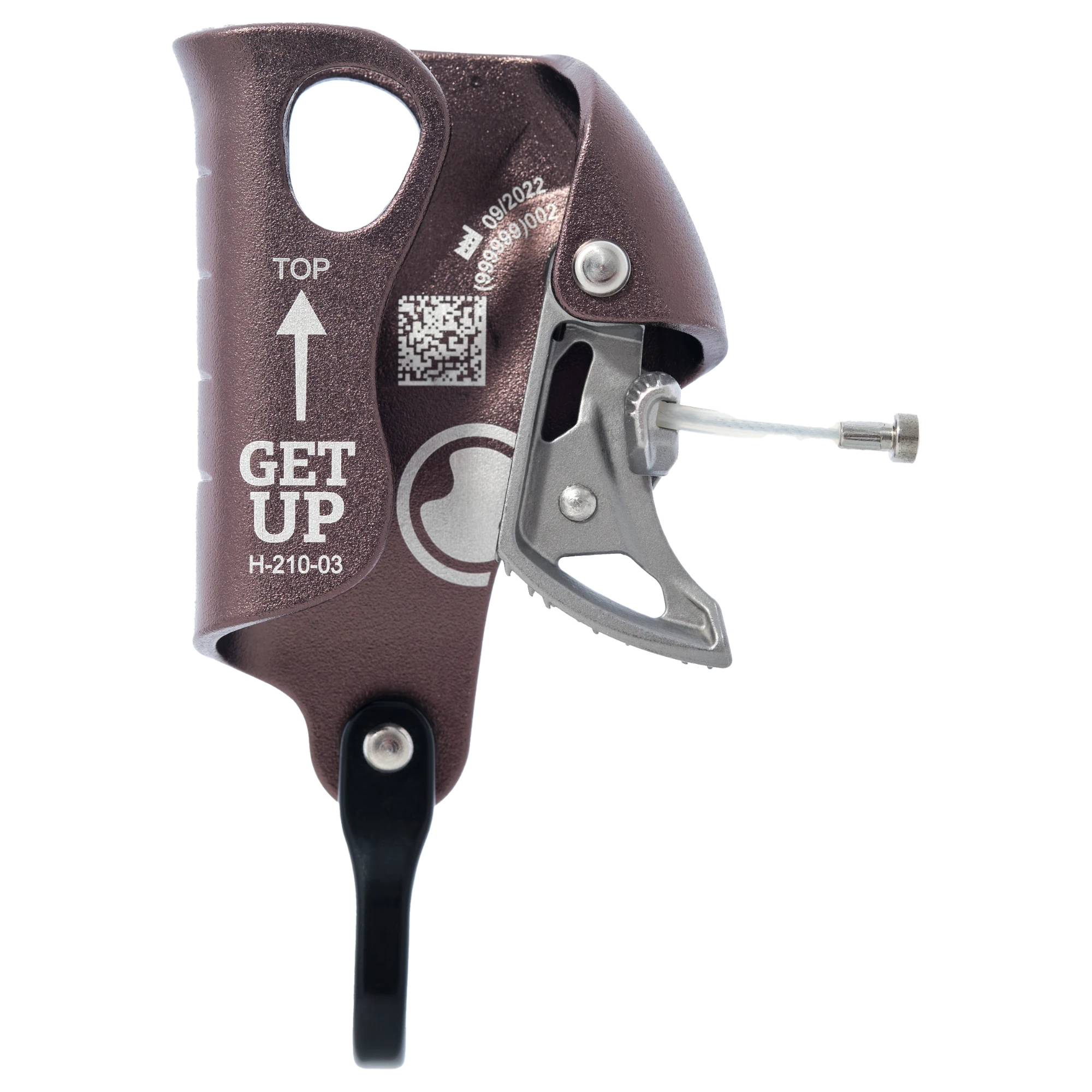 GET-UP is both rope clamp and manual ascender at once, and was developed for anyone who wants the best handling even under the most challenging conditions. The clever, ergonomic design makes it possible to use it left-handed, right-handed or two-handed with a huge amount of grip. GET-UP is light and extremely robust at the same time because there are no synthetic parts. The 2-carabiner eyelet eliminates carabiner chains. That means: Less material used and faster ascent if you use foot slings and cowtails. You can also use pulley systems much easier. The newly designed opening zipper on the GET-UP prevents unintentional opening it and makes one-handed operation very easy – even when wearing thick gloves.