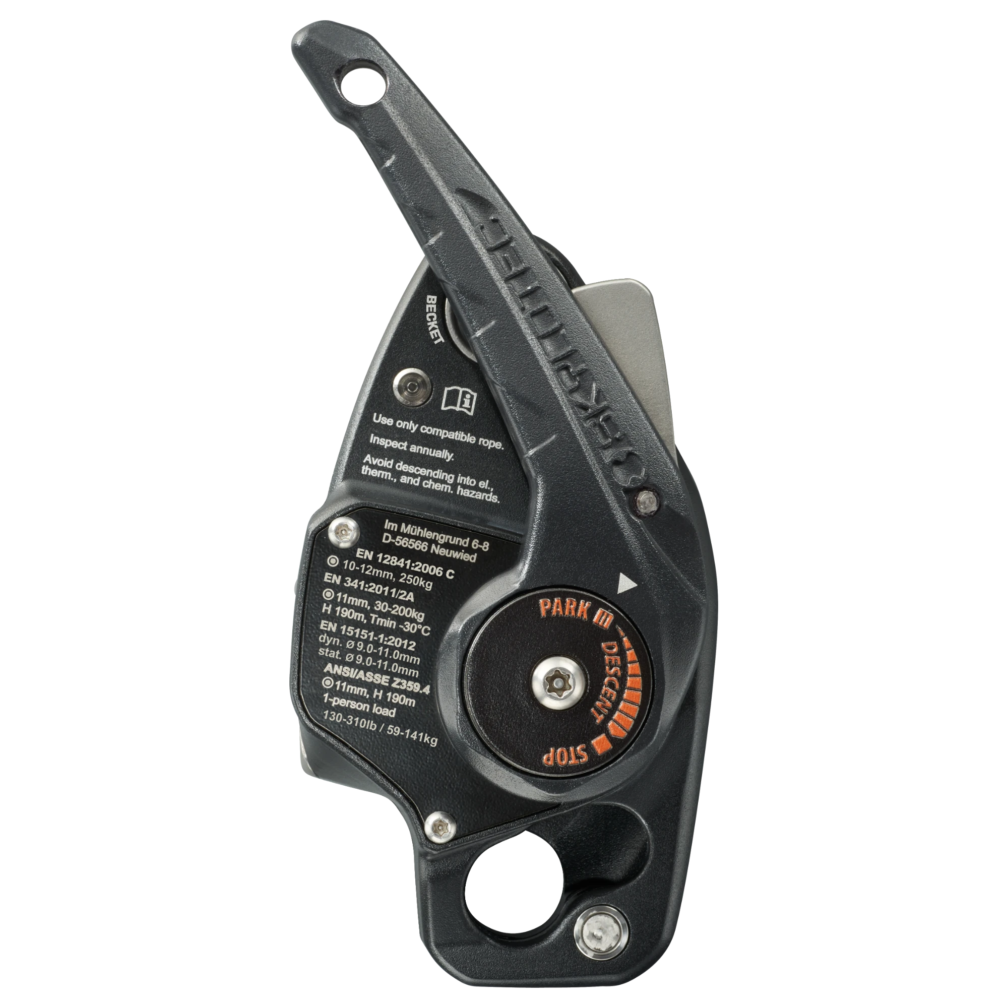 SIRIUS packs the advantages of the best descenders for industrial and rescue applications into an extremely compact design – for better handling and long service life. SIRIUS lies perfectly in your hand. The auto-returning operating lever has a particularly small radius of motion so that you can work fast, accurately, more comfortably and safely. During rope insertion, which is intuitive and simple, the carabiner on the harness can stay connected to the device. We designed the route of the rope in such a way that it is protected from twisting and kinking, and from excessive wear and tear. SIRIUS was developed for extended use under the toughest of conditions.