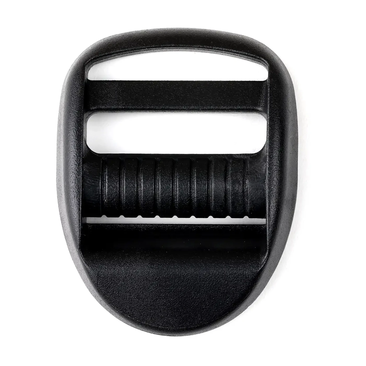 This adjuster has a high release angle tab with a wavy design. It has more logo space compared to its previous version, and it has the same design and strength as YKK’s LK25WG adjuster. It also allows for easy adjustment due to its curved finger tab.