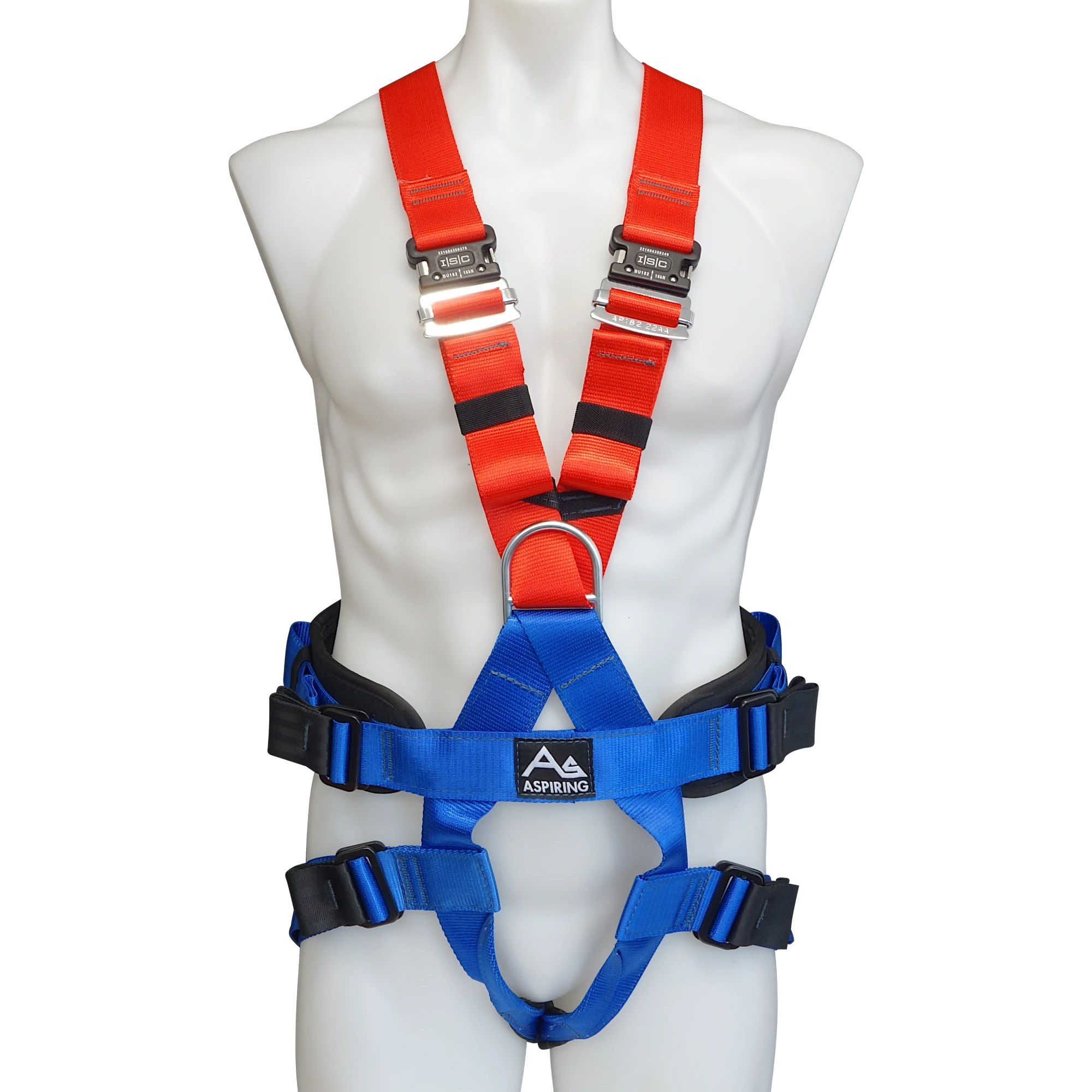 Full body harness with front attachment point designed for ziplines and flying foxes.